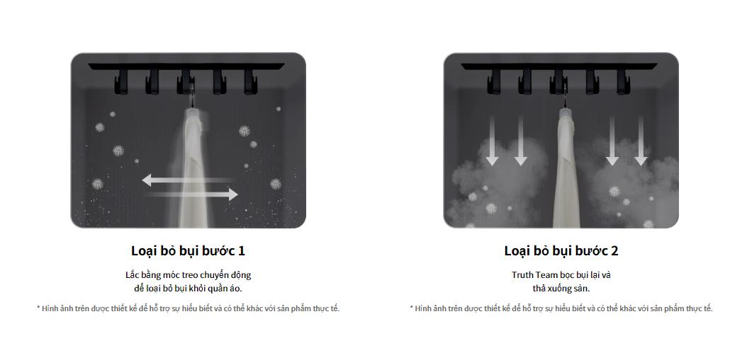 - Loại bỏ bụi mạnh mẽ bằng phương pháp xoắn mới. Nó lắc mạnh quần áo tới 350 lần mỗi phút và loại bỏ đồng đều 99% bụi mịn khỏi vùng cánh tay, không thể bị gió thổi bay.