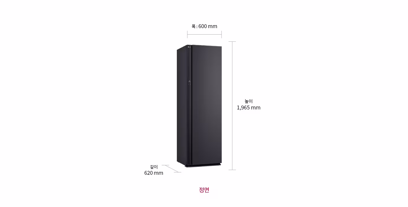 - Kích thước khi cửa mở (WxHxD, mm) 600 x 1.965 x 1.190.