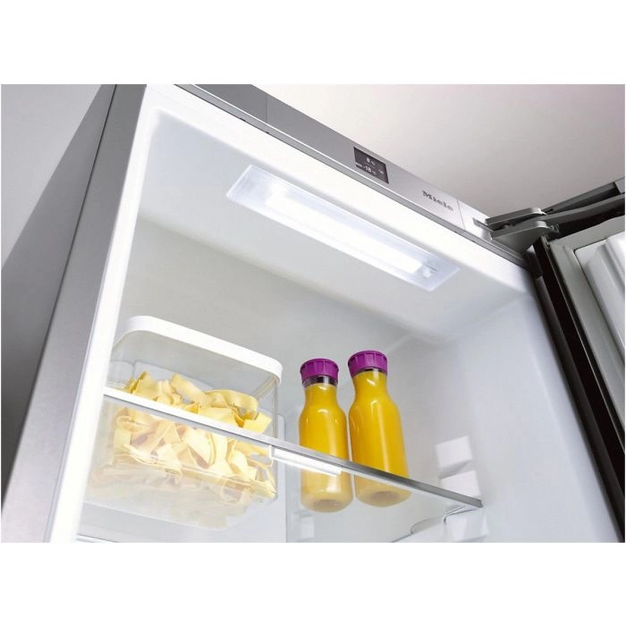 - Trang trí nội thất NoFrost, làm đông nhanh, máy làm đá viên (kết nối nước cố định), làm mát động, đèn LED chiếu sáng, cửa thu vào có giảm chấn, báo động cửa, điều khiển ứng dụng tùy chọn (Miele @ home, ZigBee)
