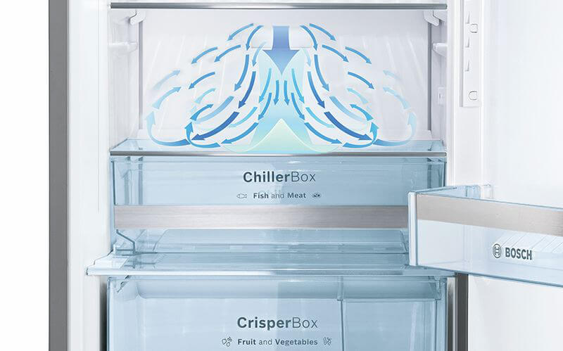 Hệ thống MultiAirflow với quạt hỗ trợ tạo ra một chuyển động nhẹ nhàng, thậm chí không khí lạnh ở tất cả các tầng trong khu vực làm mát và đóng băng. Nó giảm thiểu sự biến động nhiệt độ và làm giảm thời gian làm mát - nhờ đó thức ăn của bạn sẽ tươi lâu hơn.