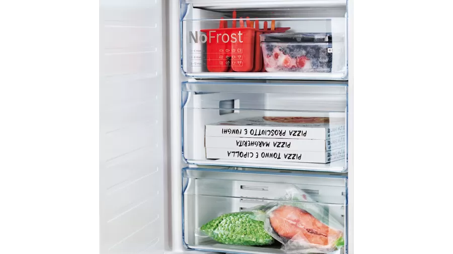 - Sự lưu thông đồng đều của không khí lạnh khô bên trong tủ đông ngăn chặn sự hình thành băng. Do đó, đá không hình thành trên thành sau hoặc trên các ngăn của tủ đông. Do đó, No Frost mang đến sự tiện lợi tối đa vì bạn không bao giờ phải rã đông ngăn đông nữa.