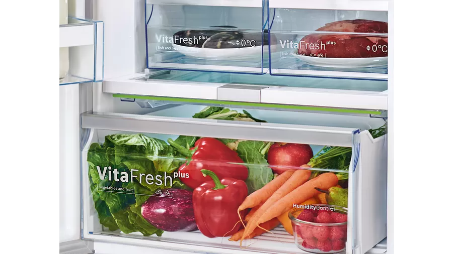 - Nhờ kiểm soát nhiệt độ, hệ thống làm tươi VitaFresh cung cấp các điều kiện bảo quản lý tưởng cho tất cả các loại thực phẩm tươi sống. Cá và thịt tươi lâu hơn ở nhiệt độ gần 0°C. Trái cây và rau quả được hưởng lợi từ khí hậu tối ưu. Thưởng thức nhiều món ăn hơn, ít lãng phí thức ăn hơn.