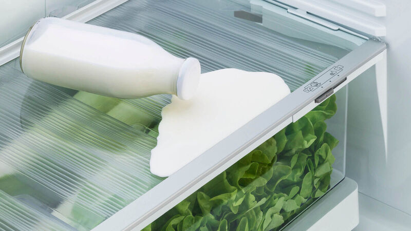 Không còn vết bẩn vĩnh viễn với tính năng EZKleen của chúng tôi dành cho tủ lạnh bằng thép không gỉ. Lớp phủ chống dấu vân tay có nghĩa là bạn chỉ cần lau sạch mọi dấu vết. Các kệ kính an toàn chống tràn dễ dàng thu giữ bất kỳ giọt nhỏ giọt hoặc rò rỉ nào.