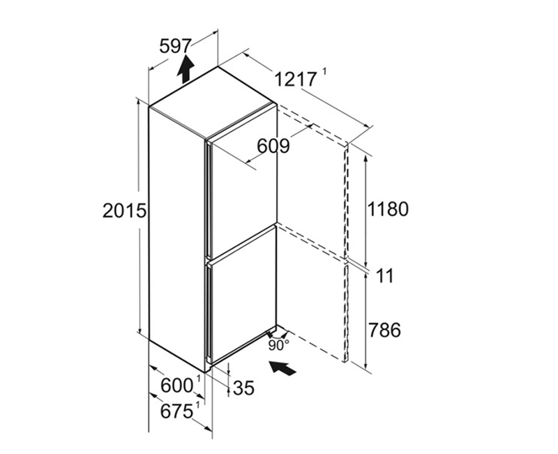 - Kích thước bên ngoài: chiều cao / chiều rộng / 201,5 / 59,7 / 67,5 cm.