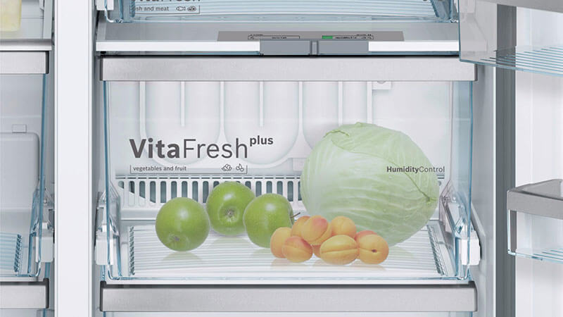 – Công nghệ VitaFresh của Tủ lạnh side by side BOSCH KAN92VI35O serie 4 bảo quản thực phẩm tươi ngon hơn. Công nghệ làm lạnh VitaFresh tiên tiến đảm bảo điều kiện lý tưởng để bảo quản độ tươi ngon cho thực phẩm tươi sống, thực phẩm đông lạnh và đồ uống của bạn.