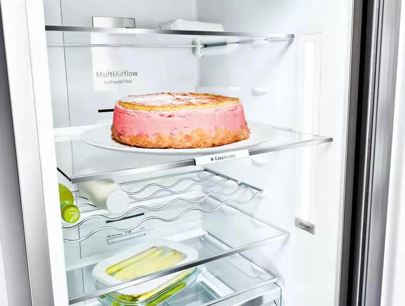 – Hệ thống MultiAirflow trong Tủ lạnh side by side BOSCH KAN92VI35O serie 4 phân phối không khí đều trong tủ để đảm bảo thực phẩm giữ được tươi lâu hơn. Điều này là một trong những tính năng cải thiện khả năng lưu thông không khí xung quanh, điều chỉnh nhiệt độ, và loại bỏ tất cả các khả năng ngưng tụ, đảm bảo những dòng không khí lạnh được phân khối đều cho tất cả các kệ ở mọi cấp độ và mọi khu vực trong tủ. Biến động về nhiệt độ được giảm thiểu, thời gian làm lạnh thực phẩm giảm – giúp thực phẩm của bạn giữ được độ tươi lâu hơn.
