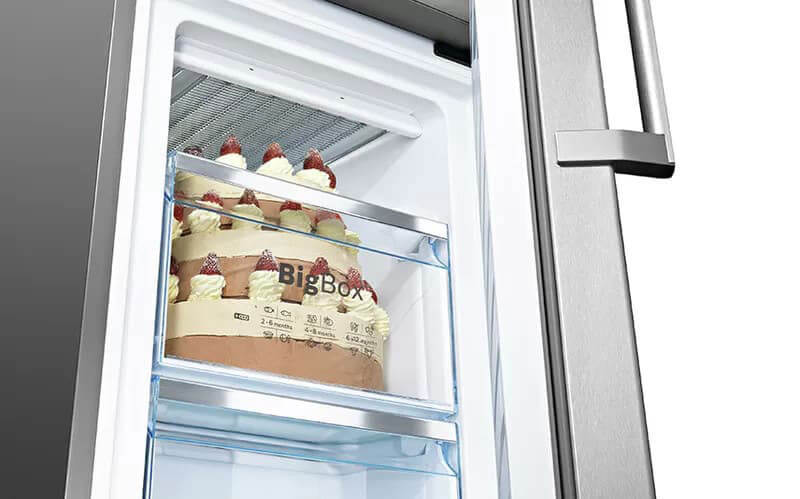 – Bigbox (hộp chứa lớn) của Tủ lạnh side by side BOSCH KAN92VI35O serie 4 tạo nhiều không gian để bảo quản thực phẩm có kích thước lớn. Thiết kế một ngăn kéo sâu, và lớn và có thể xếp chồng lên nhau là đặc biệt thiết thực cho các các thực phẩm lớn cần bảo quản như bánh kem hoặc Pizza. Hoàn toàn không có vấn đề gì nếu bạn một chiếc bánh kem vào ngày sinh nhật hoặc bảo quản chiếc bánh cưới – ngăn kéo của BigBox sẽ cung cấp đủ chỗ để bảo quản hoàn hảo.