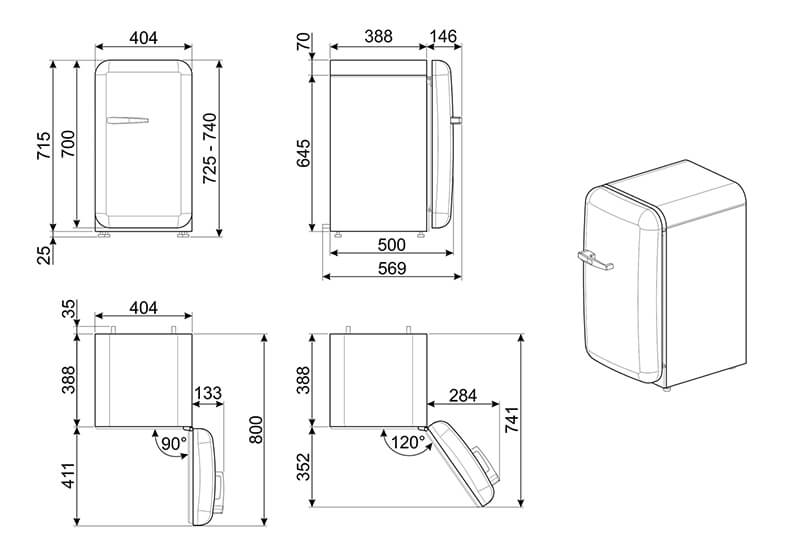 – Độ sâu sản phẩm với cửa mở 90 °: 800 mm