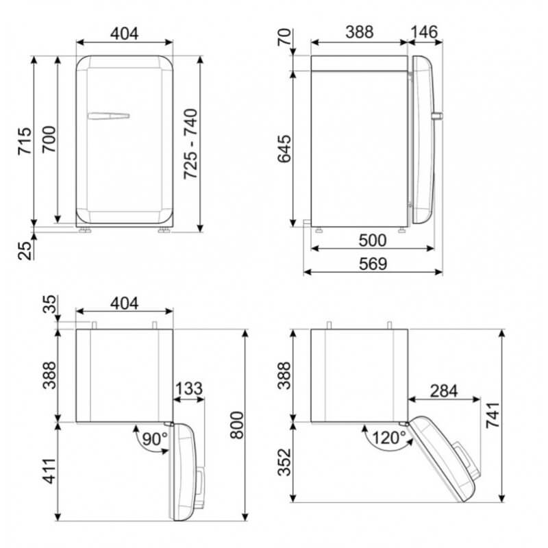 – Độ sâu sản phẩm với cửa mở 90 °: 800 mm
