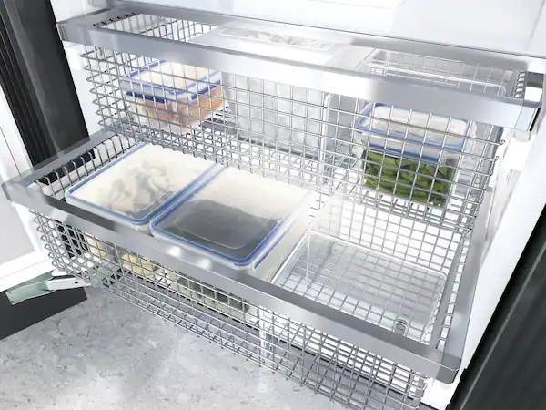 - Lưu trữ nhẹ nhàng cho độ tươi lâu dài. Các ngăn kéo của thiết bị Miele MasterCool của bạn có môi trường hoàn hảo để bảo quản thực phẩm cẩn thận. Nhờ chức năng MasterFresh cải tiến, nhiệt độ làm mát đặc biệt thấp, nhờ đó các vitamin và khoáng chất được bảo toàn trong thời gian dài. Độ ẩm cũng được điều chỉnh hoàn hảo - cho dù là trái cây, rau, các sản phẩm từ sữa, cá hay thịt. Thực phẩm của bạn tươi lâu hơn đến 3 lần.