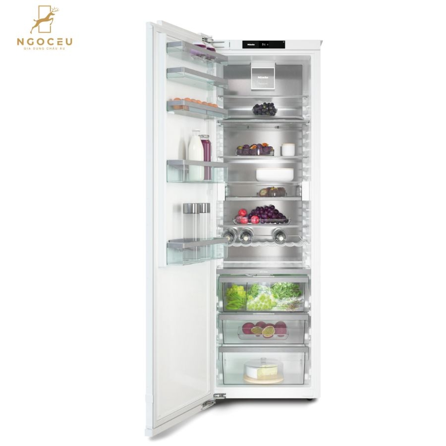 - Giữ tủ lạnh Miele của bạn luôn ngăn nắp hoàn hảo với kệ kính FlexiTray thoải mái. Cái này có thể xoay và có thể dễ dàng xoay tiến và lùi 180 độ. Điều này có nghĩa là bạn không còn phải di chuyển bất cứ thứ gì sang một bên để lấy thức ăn ở phía sau. Chúng chỉ đơn giản được quay về phía trước mà không làm mất bất kỳ không gian nào trong nội thất.
