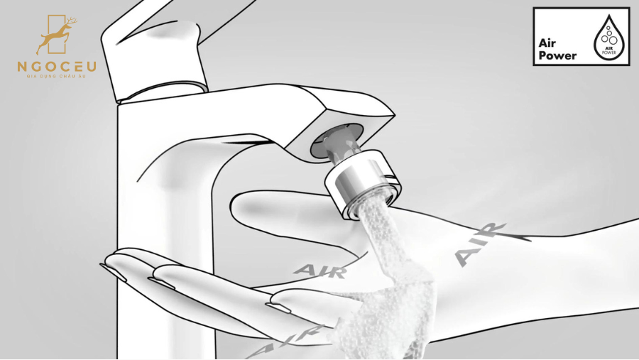 Trộn đều nước với không khí. Những giọt nước được làm giàu có hương vị thơm ngon, nhẹ nhàng và êm dịu trên da và rơi trở lại chậu rửa mà ít bắn tung tóe hơn. Nguồn tài nguyên nước vô giá được sử dụng hiệu quả hơn.