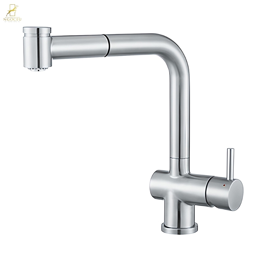– Đầu vòi tạo nên điểm nhấn với kiểu dây rút và thêm chế độ nước phun sen, chỉ với một chạm nhẹ nhàng trên đầu vòi cho bạn các chọn lựa hoàn hảo phù hợp từng nhu cầu trong nhà bếp.