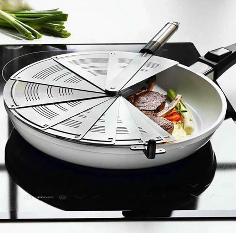 Vung chắn mỡ thông minh Leifheit mặt tấm chắn có thêm các lỗ, khe dài thoát hơi khi nấu nướng, có thể mở rộng hết cỡ hoặc độ rộng tùy chỉnh khi nấu nướng một cách dễ dàng, cách thức hoạt động. Nhờ có lẫy khóa bảo vệ tiện dụng, người dùng sẽ không cong lo lắng đến những tai nạn hay sơ suất làm nguy hiểm và dễ gây tổn thương cho mình Là sản phẩm được người tiêu dùng bình chọn là sản phẩm tốt nhất